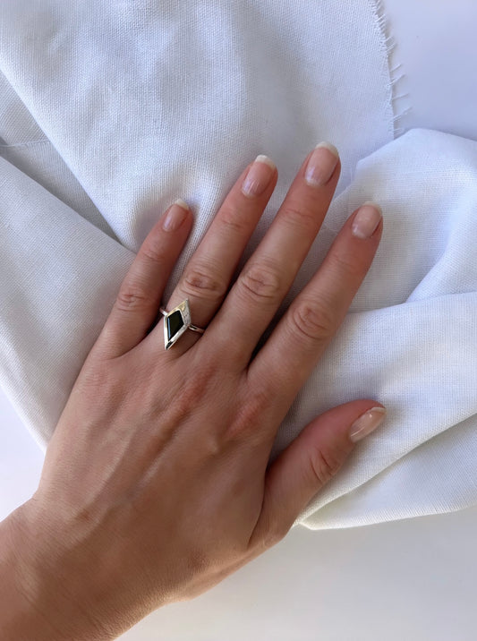 ASYMMETRIC KITE 1 / Silver Ring (adjustable) with Black Spinel
