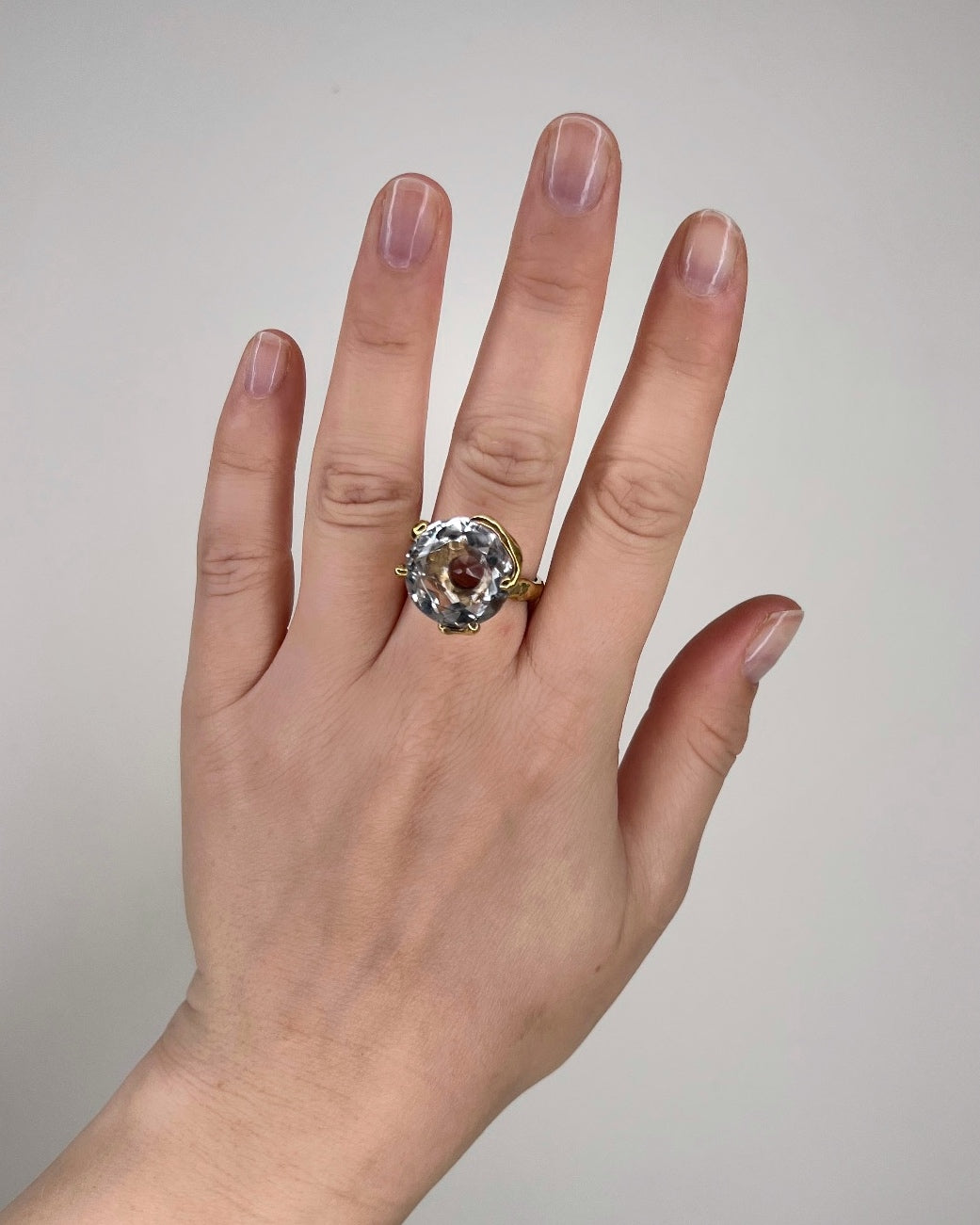 KISS MY RING / Ring in Gold & Big Clear Quartz